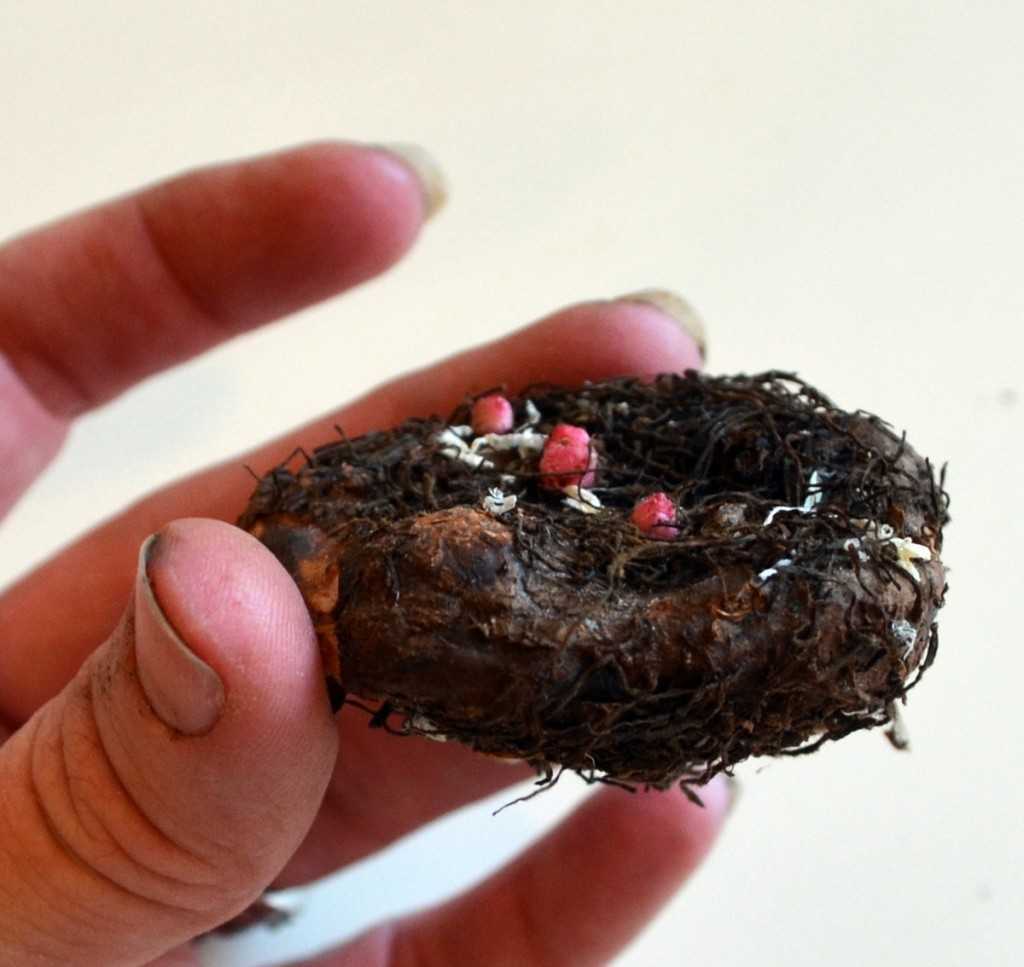 После выкапывания «вяленых» клубней их нужно поместить в бытовой холодильник. Так как они могут начать прорастать, придется время от времени аккуратно удалять ростки. Додержав семенной материал до марта, его можно смело высаживать в горшки.