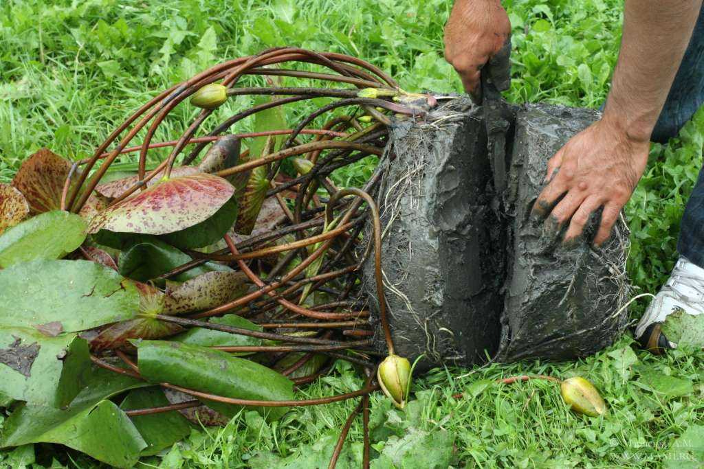 Если кувшинка растет непосредственно в субстрате дна водоема, то главное при делении куста -правильно выкопать корневище