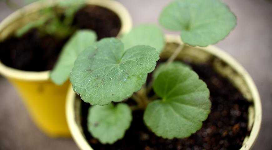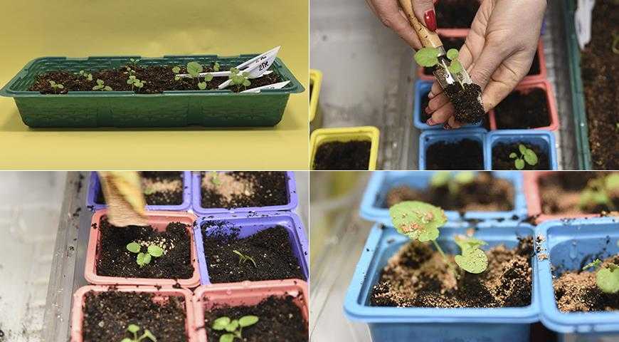 Когда саженцы достигнут в высоту 8-12 см и на них появятся по 2-4 настоящих листочка, можно будет рассадить герань в отдельную тару. Подготовка контейнеров, грунта и последующий уход делается по общему правилу.