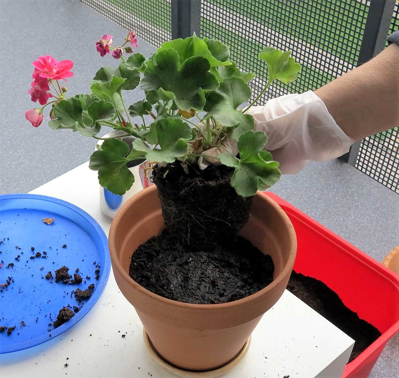 В последних двух случаях пеларгонию пересаживают методом перевалки, в горшок на 2-3 см больше старого горшочка.