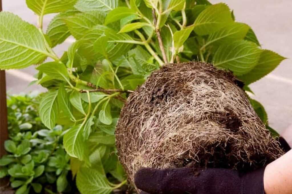 Чтобы гортензия зацвела, у нее должны быть мощные корни. Поэтому при высадке кустов из контейнера необходимо расправить нижнюю часть земляного кома, освобождая заплетенные корни. Иначе корни так и не выйдут за пределы формы горшка, не разовьются. Мы об этом писали ранее, когда давали рекомендации как правильно посадить голубику.