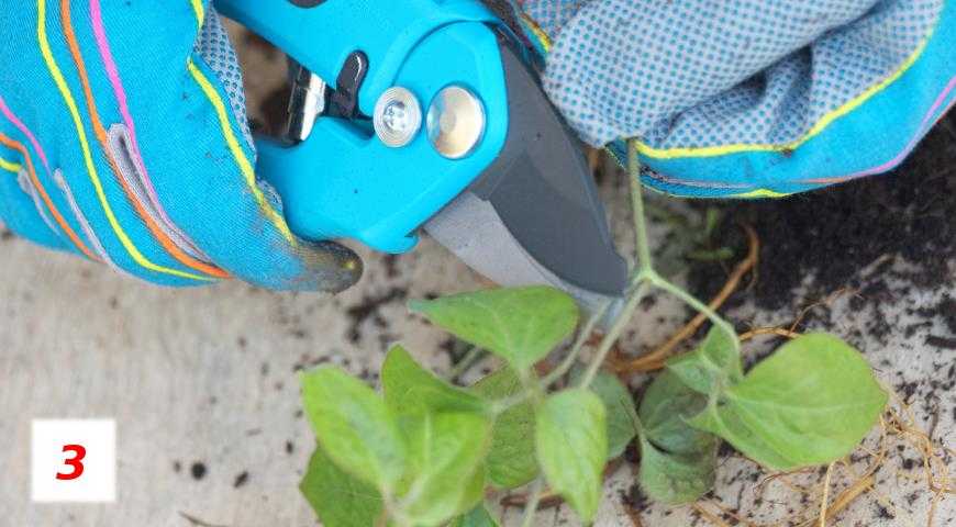 Если наземная часть растения по размеру больше корневой системы, ее укорачивают (3).