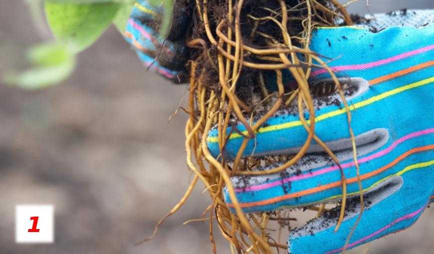 Куст осторожно выкапывают, стараясь не стрясти землю с корней. Аккуратно разделяют корешки