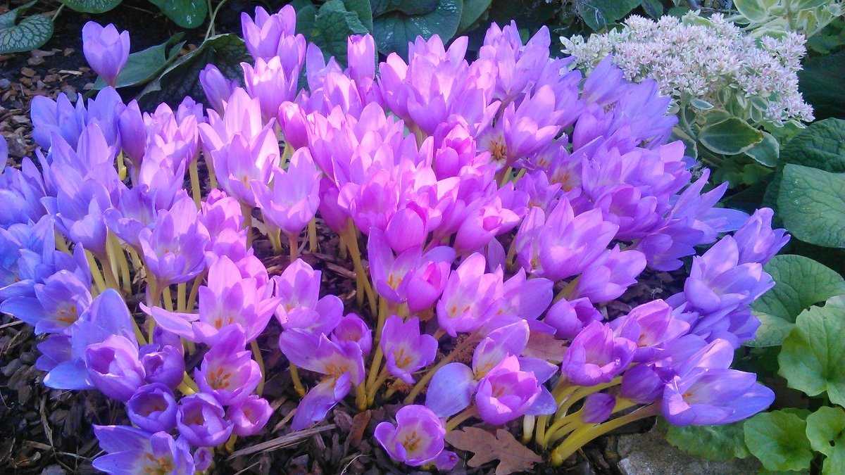 Это растение имеет множество названий, наиболее известен как осенник или безвременник. Естественный ареал распространения – побережье Черного моря, где встречается практически повсеместно. Высота куста доходит всего до 20 см, подходит для создания цветущих ковров. Известно более 70 сортов, отличающихся окрасом лепестков, формой листьев и высотой куста.