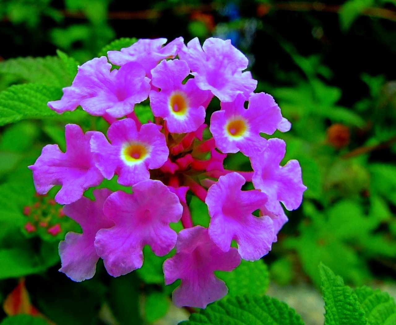 Яйцевидные листья этой плетистой лантаны покрыты нежным опушением, а по краю они зубчатые. Цветки – очень мелкие, трубчатые, сиренево-розовые с желтой сердцевиной, собраны в компактные шаровидные соцветия. Цветение наблюдается с июня по октябрь. А при выращивании на солнечном, защищенном от ветра участке лантана монтевидейская может «продержаться» на клумбе, балконе или открытой террасе до самого ноября. И ее яркие цветы даже не поблекнут.