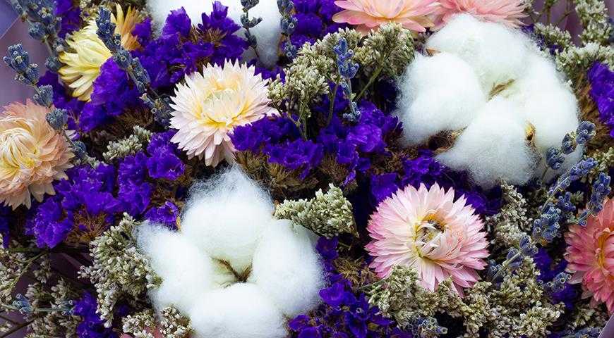 Лимониум или статице в букете из сухоцветов