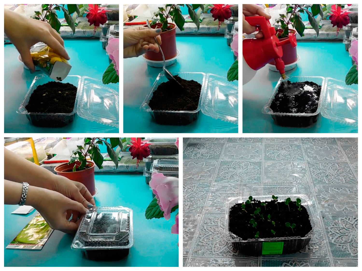 Делают это в феврале. До летнего сезона ростки хорошо разовьются, окрепнут. Предварительно землю желательно обеззаразить. Рассадные ёмкости подбирают глубиной более десяти сантиметров. Их почти полностью заполняют землёй. Это позволит пересаживать ростки, минуя пикировку, способом перевалки.