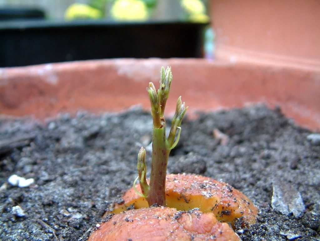 Этот процесс заключается в непосредственной высадке косточки в горшок.