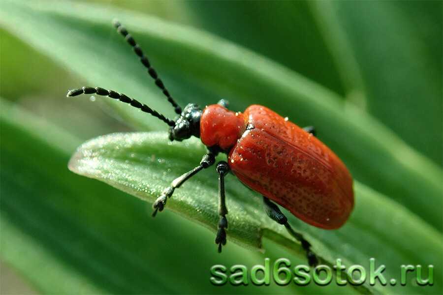 Лилейная трещалка – красный жучок, издающий высокий звук в предчувствии опасности, – нежеланный гость в саду, а его потомство тем более. Тело его личинок бывает покрыто слизью из экскрементов, так что, увидев их на нижней стороне листа, вы не сразу догадаетесь, что это такое. И взрослые особи, и личинки наносят саду большой урон с начала весны и до конца лета.
