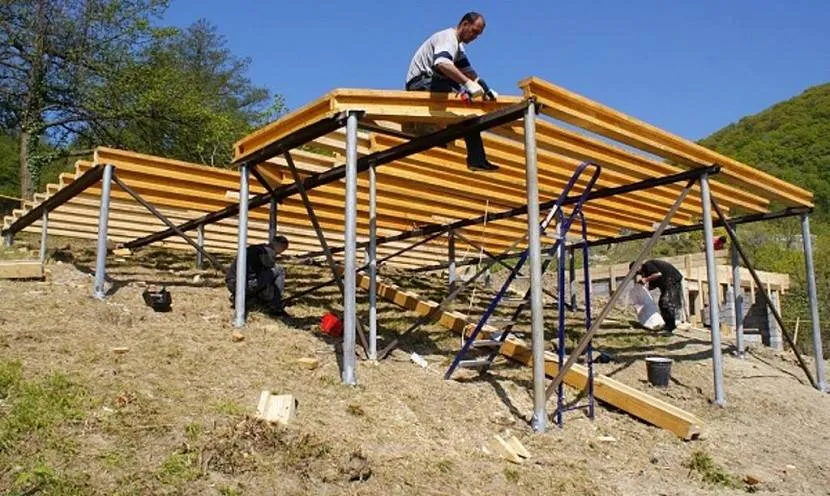 брус. Строительство из бруса позволяет сэкономить на материалах. Этот пиломатериал можно использовать для строительства крыши, стоек, опор и основания сооружения.
