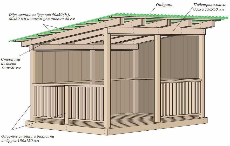 Основные характеристики проекта односкатной беседки: