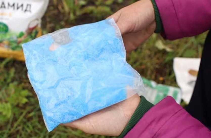 Теперь расскажем, как развести Сульфат меди и полить им почву: