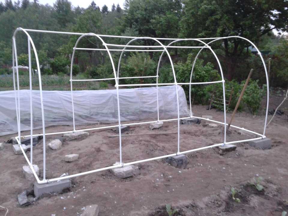 Это первый этап строительства теплицы из ПВХ труб своими руками