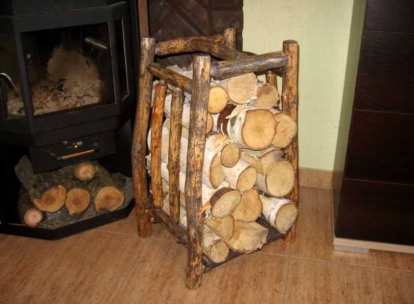 Деревянная дровница. В загородном деревенском доме уютно смотрятся подставки для дров из дерева. Такая подставка может дополнить и интерьер бани или сауны.
