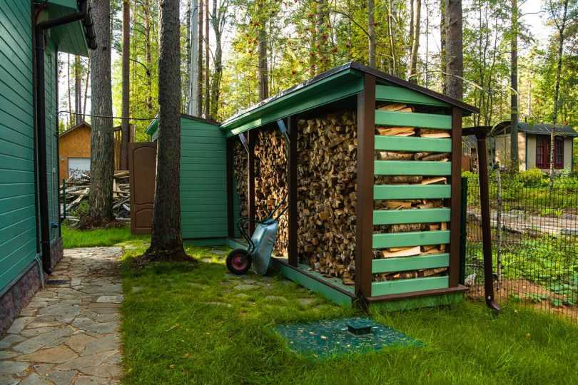 Дровник на улице может быть как пристенный, так и отдельным сооружением