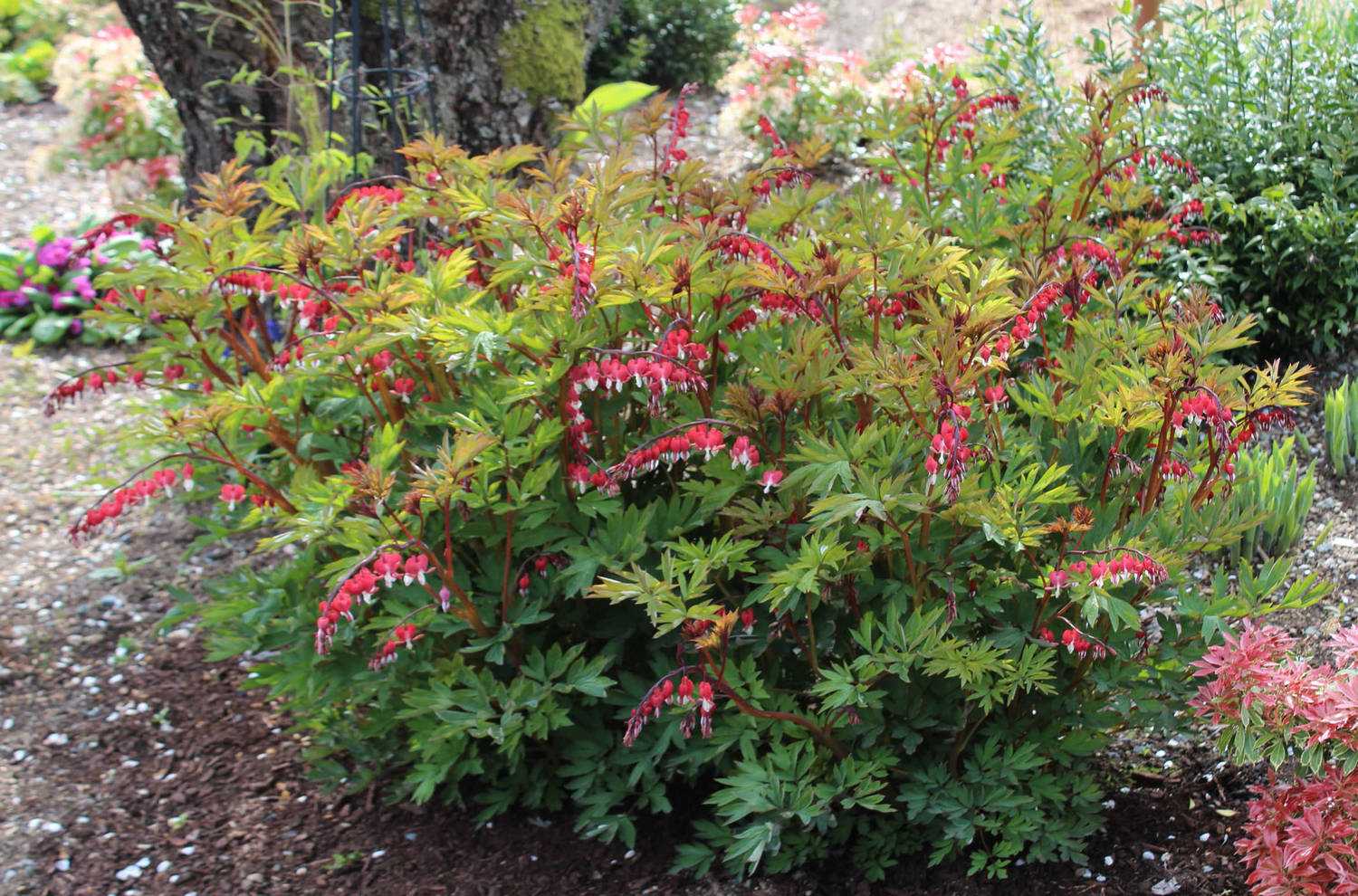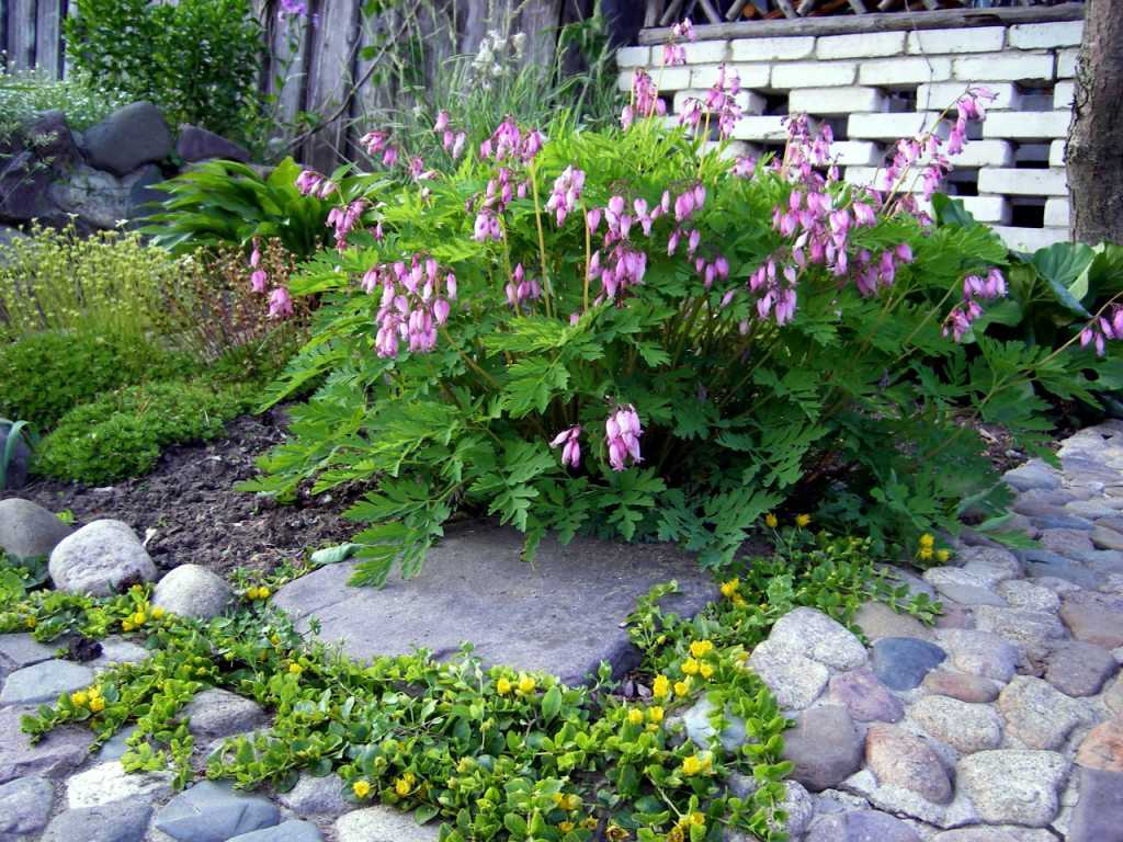 Низкие дицентры хорошо смотрятся в смешанных посадках — в цветниках, бордюрах, на горках