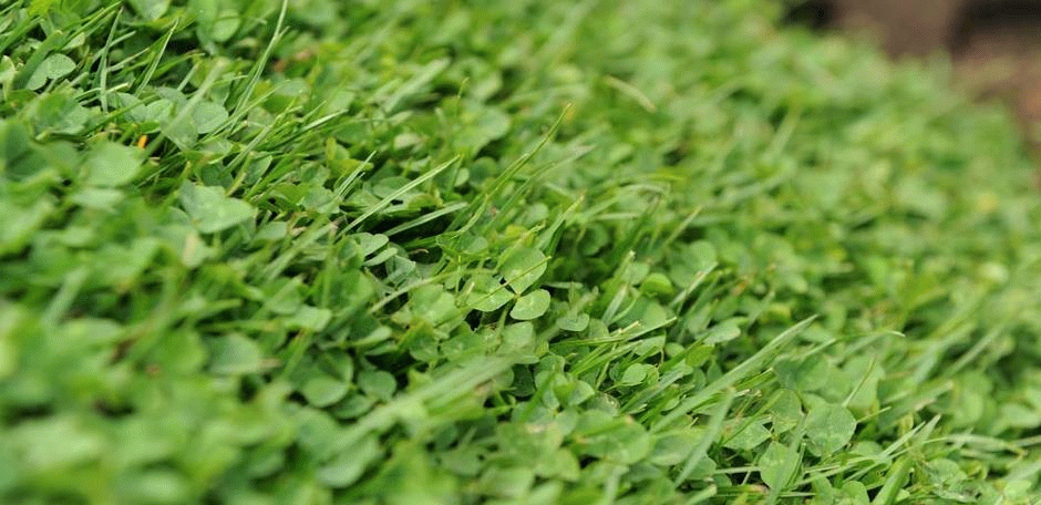 Весьма популярное решение для приусадебного газона. Микроклевер – это карликовая разновидность ползучего трилистника. Растет очень медленно, поэтому не нуждается в частом скашивании. Мелколистный клевер быстро озеленяет участок. Это трава, постепенно убивающая абсолютно все сорные растения. Миниатюрный трилистник редко добавляют в смеси, поскольку он забивает другие травы. Главные преимущества сорта: