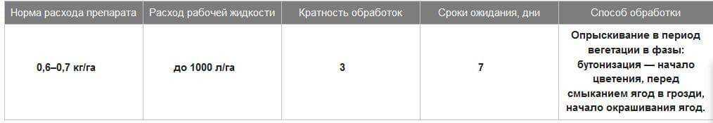 - Третью обработку осуществляют при созревании ягод — 6 г/5 л воды.