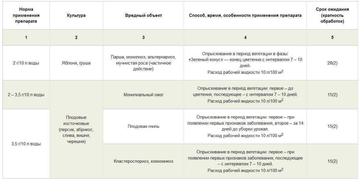 Чтобы сохранить плоды и увеличить их лежкость, стоит опрыскать дерево за 15 дней до сбора урожая. Данный пункт также отражен в инструкции по применению и его не стоит игнорировать, поскольку от этого зависит безопасность плодов для здоровья человека.