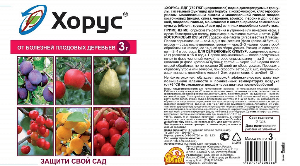 Хорус является незаменимым помощником для сада. Процедура обработки проводится методом опрыскивания