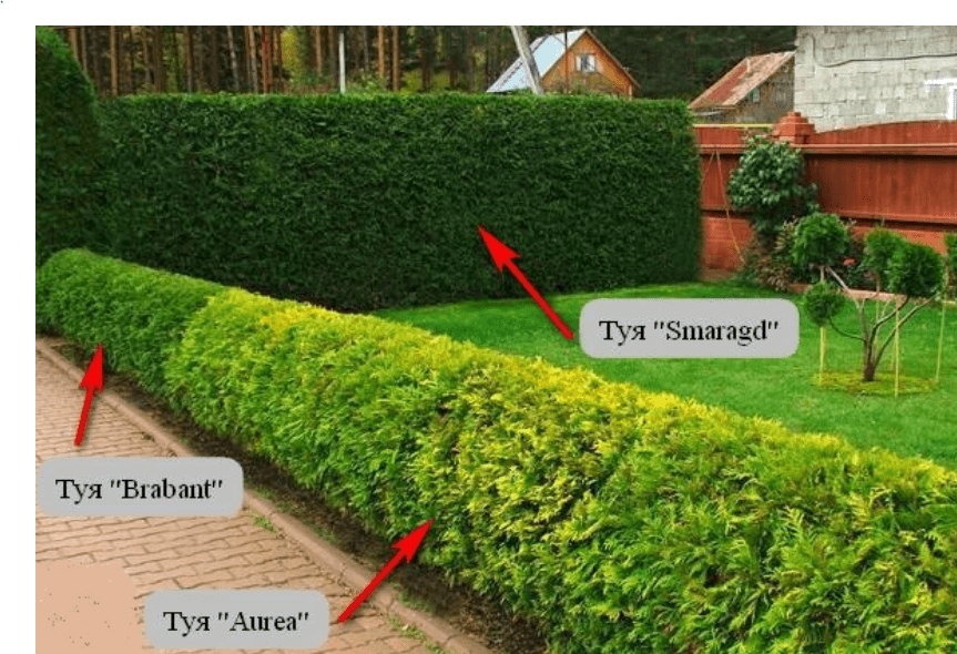 Если из туи планируется создать живую изгородь, она высаживается на расстоянии 1–1,5 м друг от друга, для аллеи расстояние между растениями должно быть 4–5 м.