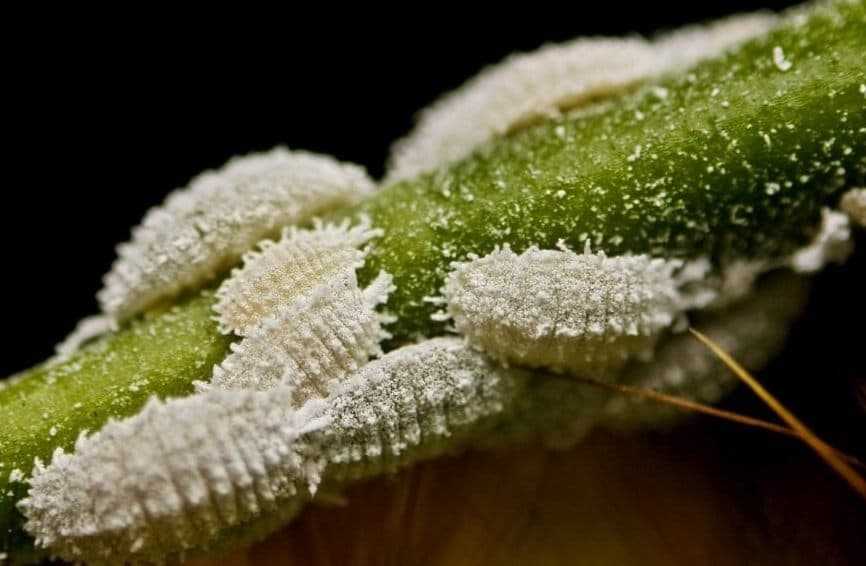 - Филлоксера — микроскопическое насекомое, чем-то напоминающее темную тлю. Обитает на поверхности земли, высасывает сок из корневища, что провоцирует развитие бактериозов и грибка. Вредителя тяжело истребить, поэтому защита крайне необходима.