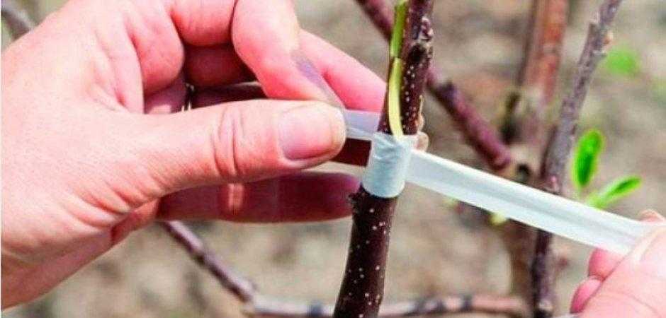 Заготовленный черенок в нижней его части обрезают треугольником таким образом, чтобы он точно попал в вырез на подвое. Соединяют их между собой, заматывают лентой и обрабатывают садовым варом. Сверху одевают целлофановую пленку. Такая методика подходит для размножения черешни молодыми зелеными ветками