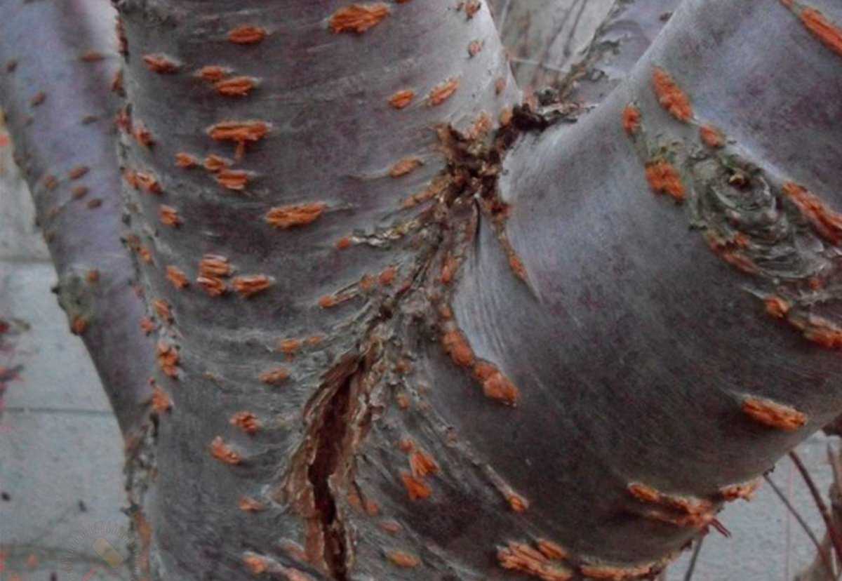 Причиной появления трещин служит быстрое развитие и активный рост древесины под корой. Это происходит стремительно из-за неправильного ухода, чрезмерного полива и злоупотребления химическими средствами.