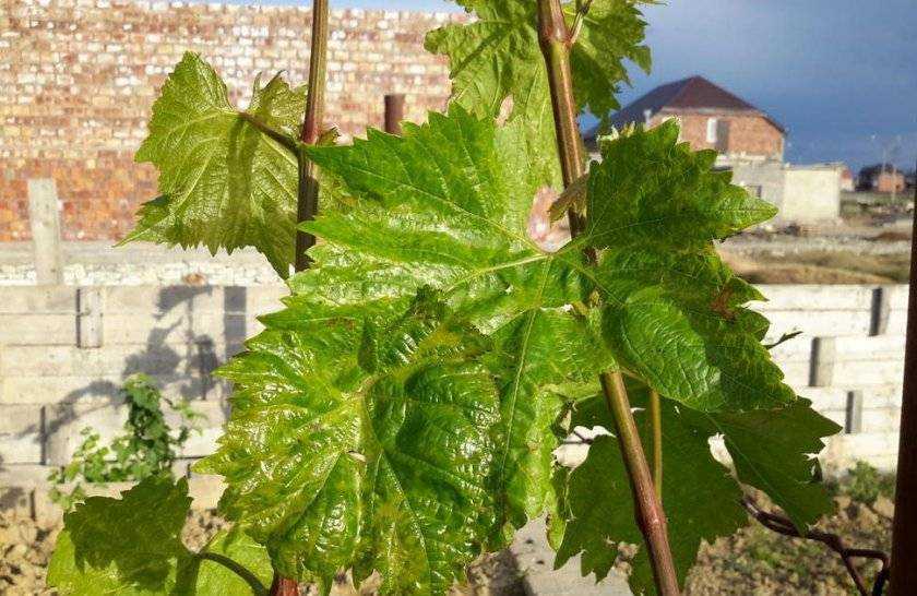 | Азот | Лоза медленно растет, цвет листьев – светло-зеленый |
