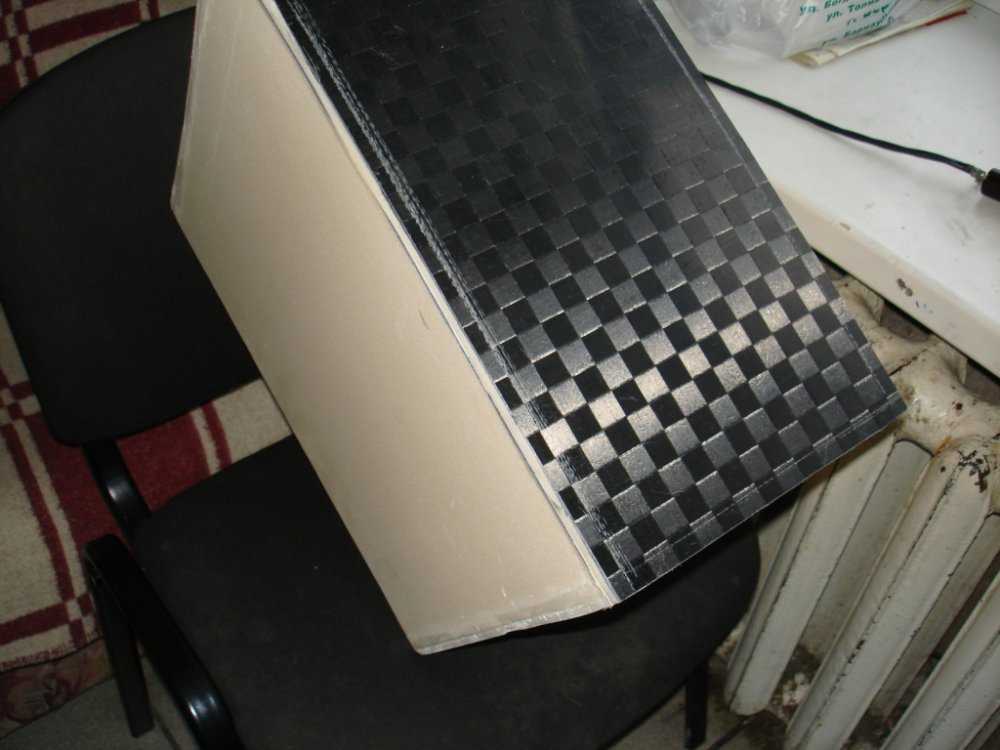 После вырезаем из низкомодульного углепластика усиление для дна ящика и клеим его на силикон.
