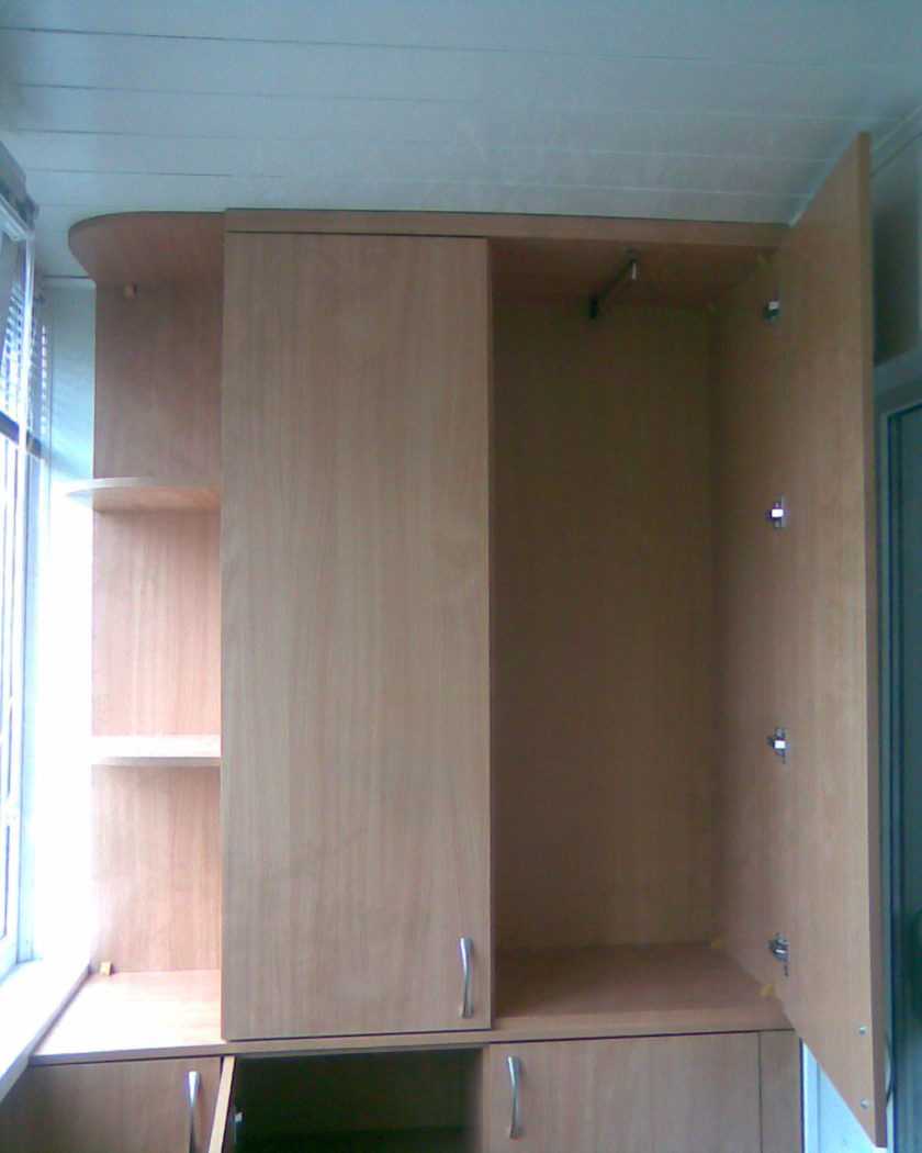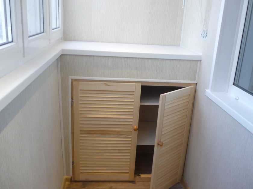- В виде небольшого шкафа с боковыми дверцами (такие конструкции занимают только одну сторону лоджии).