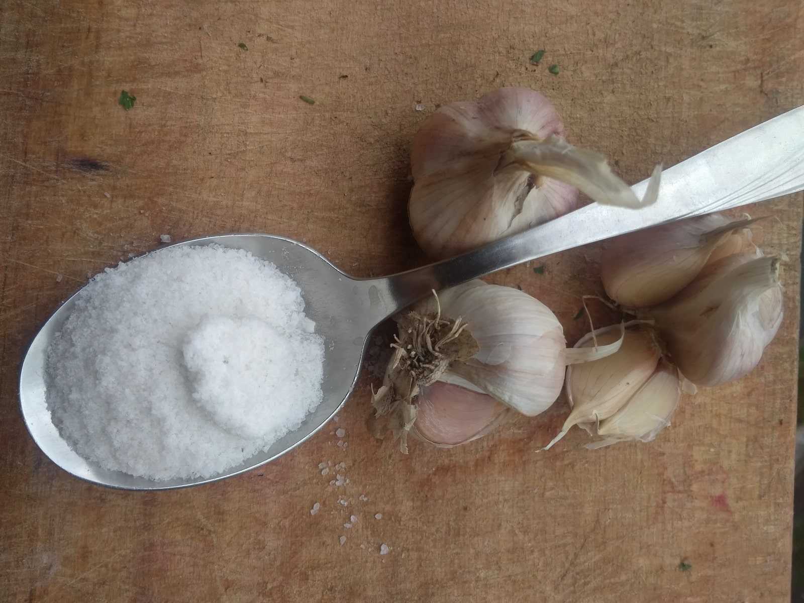 - Поваренная соль – вещество уничтожает все болезнетворные бактерии и грибки. Готовят раствор из расчёта 3 ст.л. /5 л воды. Замачивают зубцы на 3 минуты перед высадкой. Если на участке уже имеются болезни овоща, надо после соли обработать ещё и медным купоросом в течение 1 минуты. Раствор медного купороса нужен 1%.