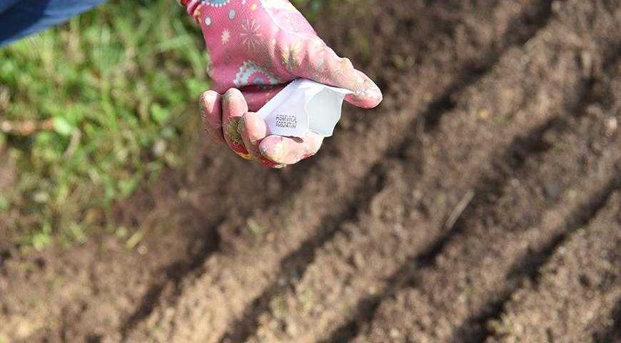 Перед посевом заранее в конце сентября — в начале октября внесите на место посадки комплексное удобрение.