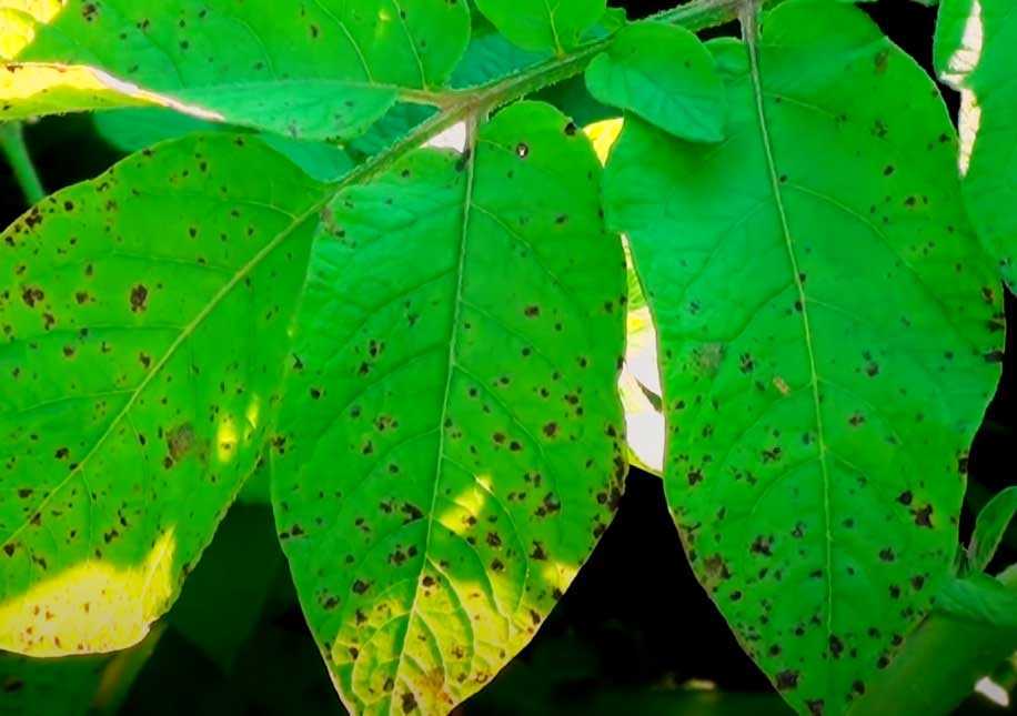 На раннем этапе поражения картофеля грибок можно опознать по коричневым или черным полупрозрачным пятнам нечеткой формы на нижних листьях куста.
