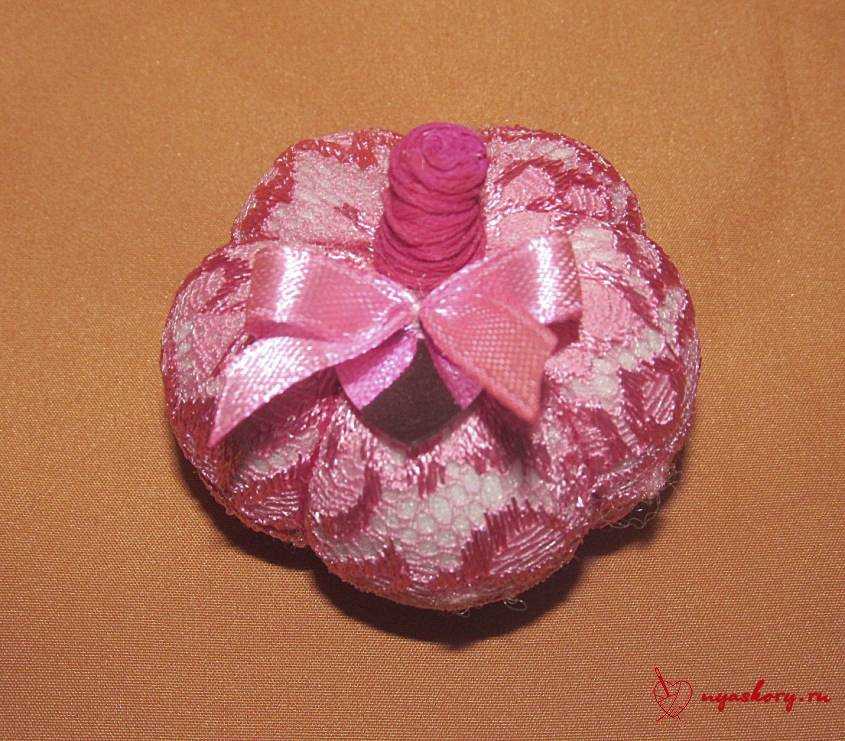 Вставьте прямоугольник внутрь тыквы и пришейте.