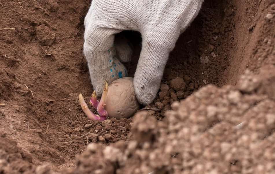 Чтобы обеспечить одновременные всходы, глубина посадки клубней должна быть одинаковой.