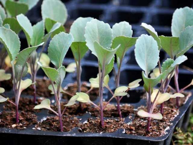 Посев капусты на рассаду производят в ящики или стаканчики. Залогом хорошего урожая в будущем будет качество посевного материала, поэтому следует отобрать крупные семена. Рекомендуется на 20 минут опустить семена в горячую воду (+45…+50 градусов), а потом пару минут подержать их в холодной воде. Семена засыпаются слоем почвы не более 1 сантиметра. Сразу после посадки сеянцы поливают, дальнейший полив осуществляется по мере подсыхания земли. Оптимальная температура в первую неделю +6…+12 градусов.