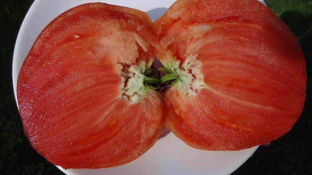 Помидоры внутри мясистые, содержат 3-4 семенные камеры. Вкус сладкий, насыщенный, аромат выраженный. В томатах содержится высокий процент сухих веществ и сахаров. Во время хранения не теряют внешних и вкусовых качеств. Не растрескиваются при разных условиях выращивания.
