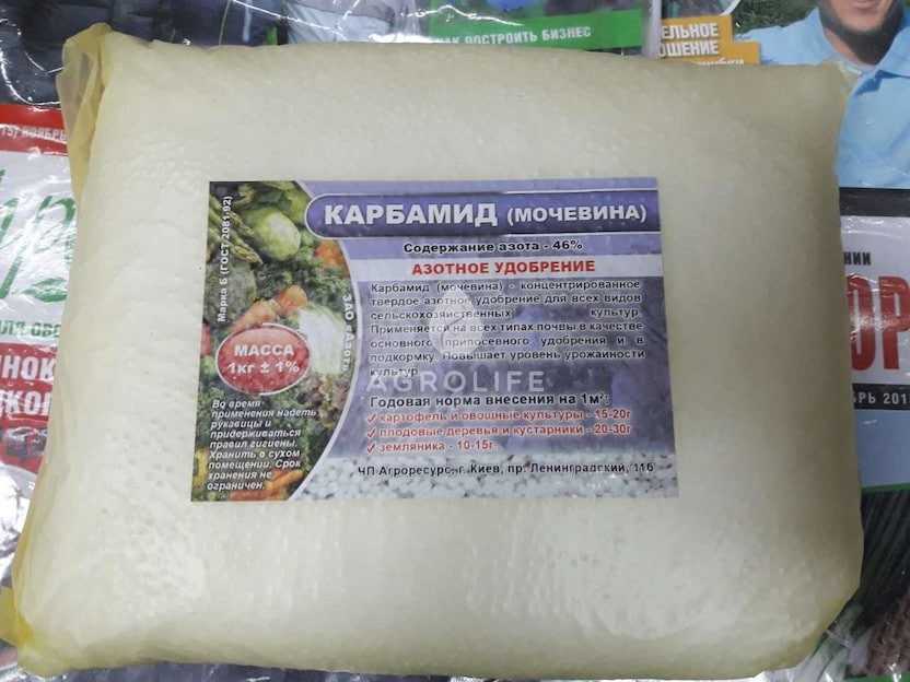 - раствор мочевины в воде (1 стол. л. на ведро). Под каждый корень по 0,5 л раствора;