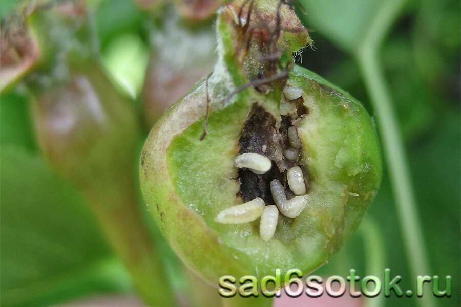 Ходы такой гусеницы можно увидеть в плодах, в этих же отверстиях – характерные для вредителя экскременты, белое вещество. Гусеница достигает зрелого возраста через 2-3 недели.
